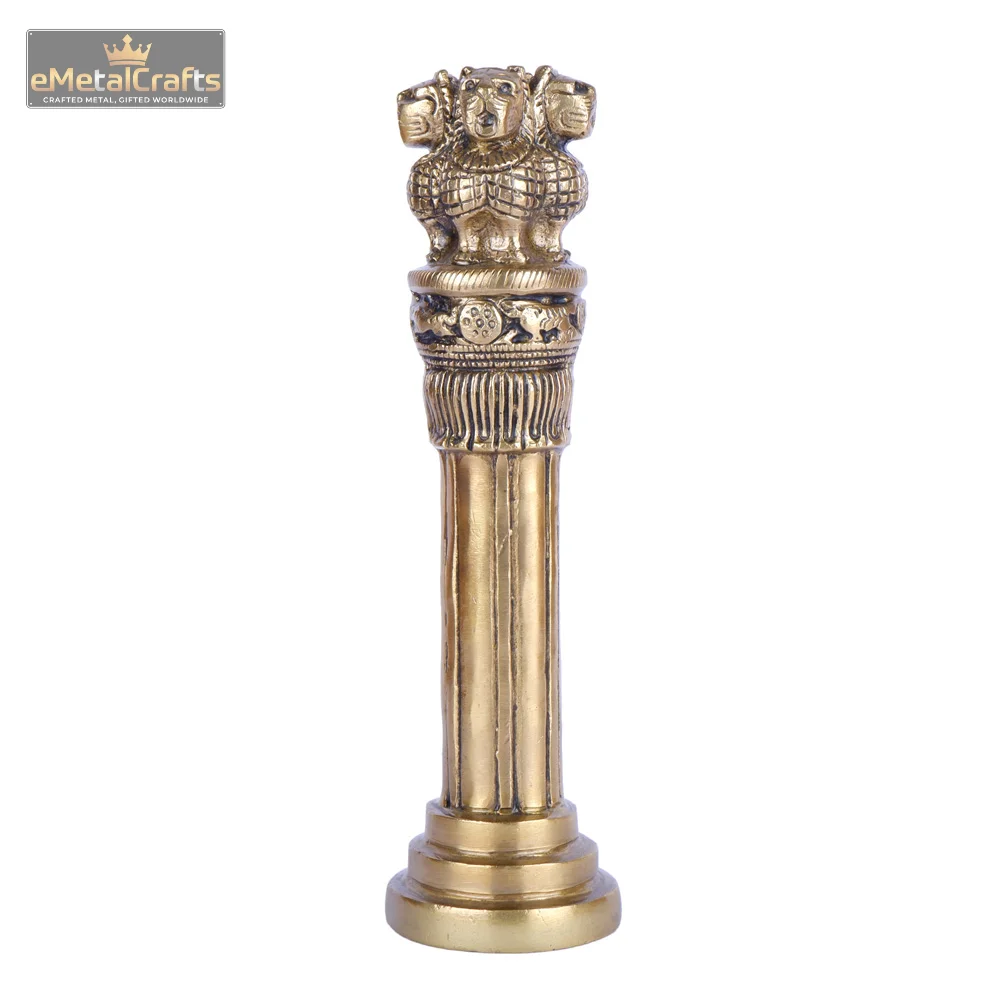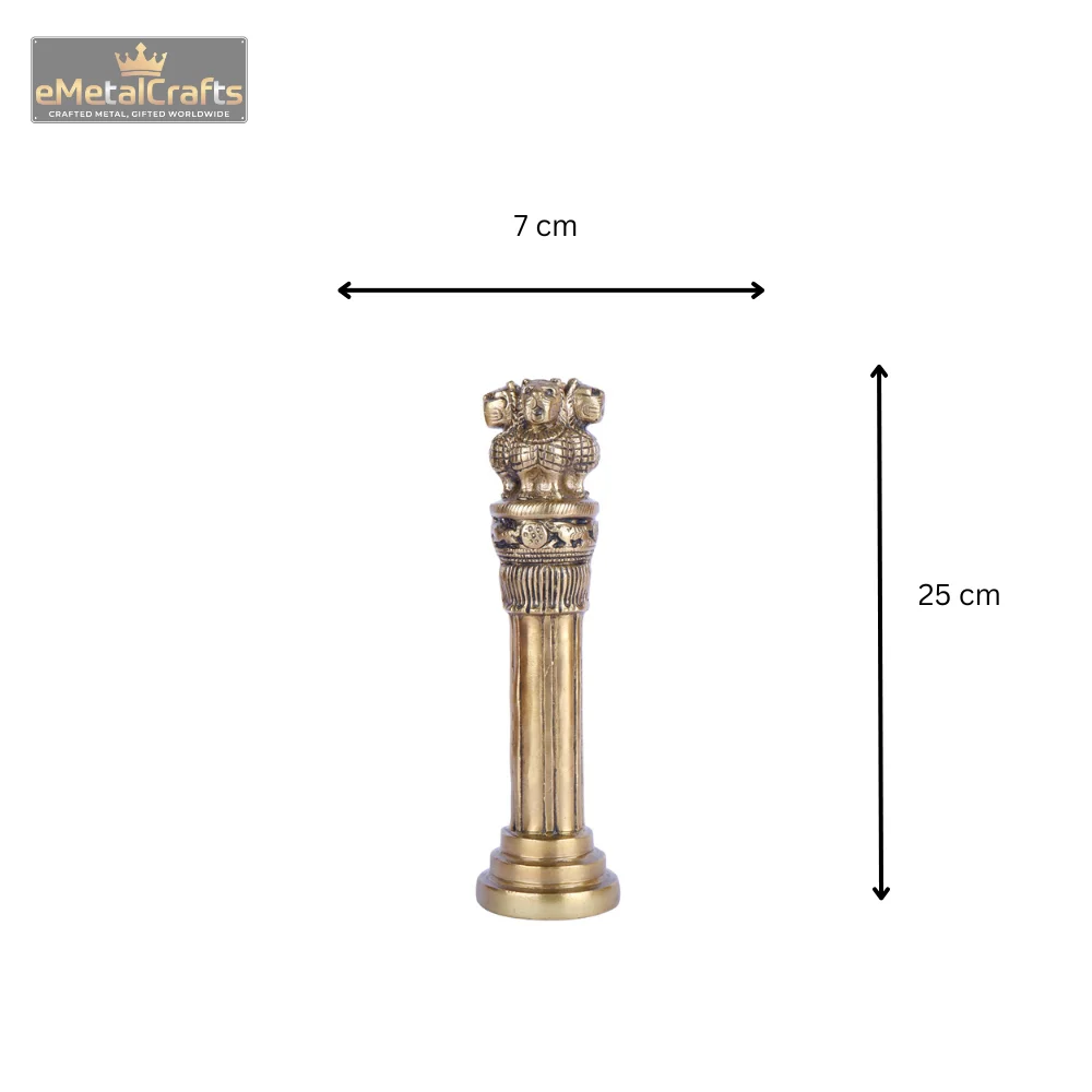 Add a touch of history and elegance to your décor with this intricately crafted Indian National Emblem Ashoka Pillar Replica. Made from durable materials with a golden finish, this miniature sculpture replicates the Lion Capital of Ashoka, India’s national emblem. The detailed design features the four Asiatic lions standing back to back atop a richly carved pillar, symbolizing power, courage, pride, and confidence.