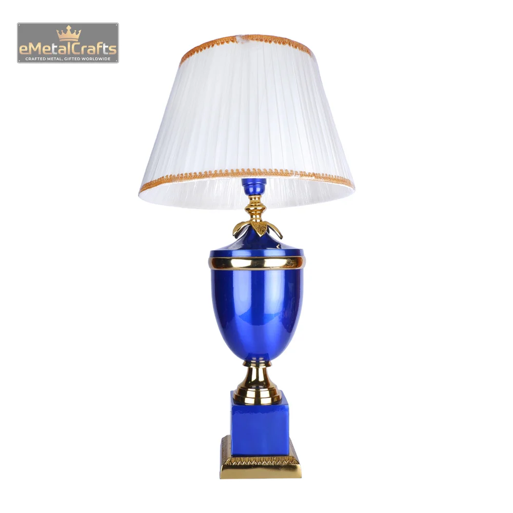 Color: Blue Base with Gold Accents & White Shade with Gold Trim
