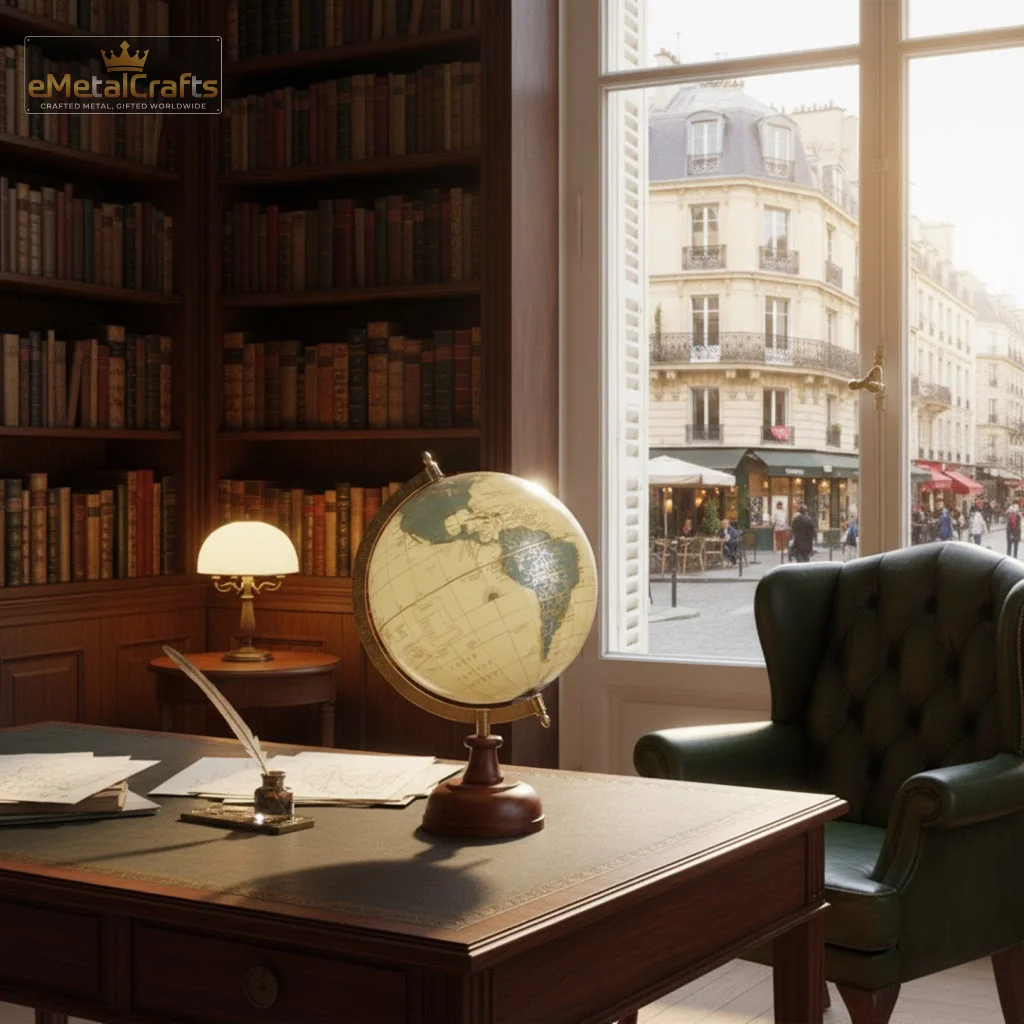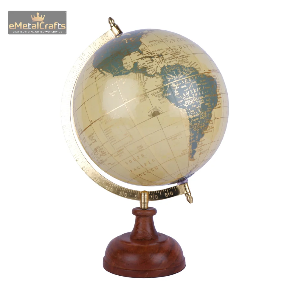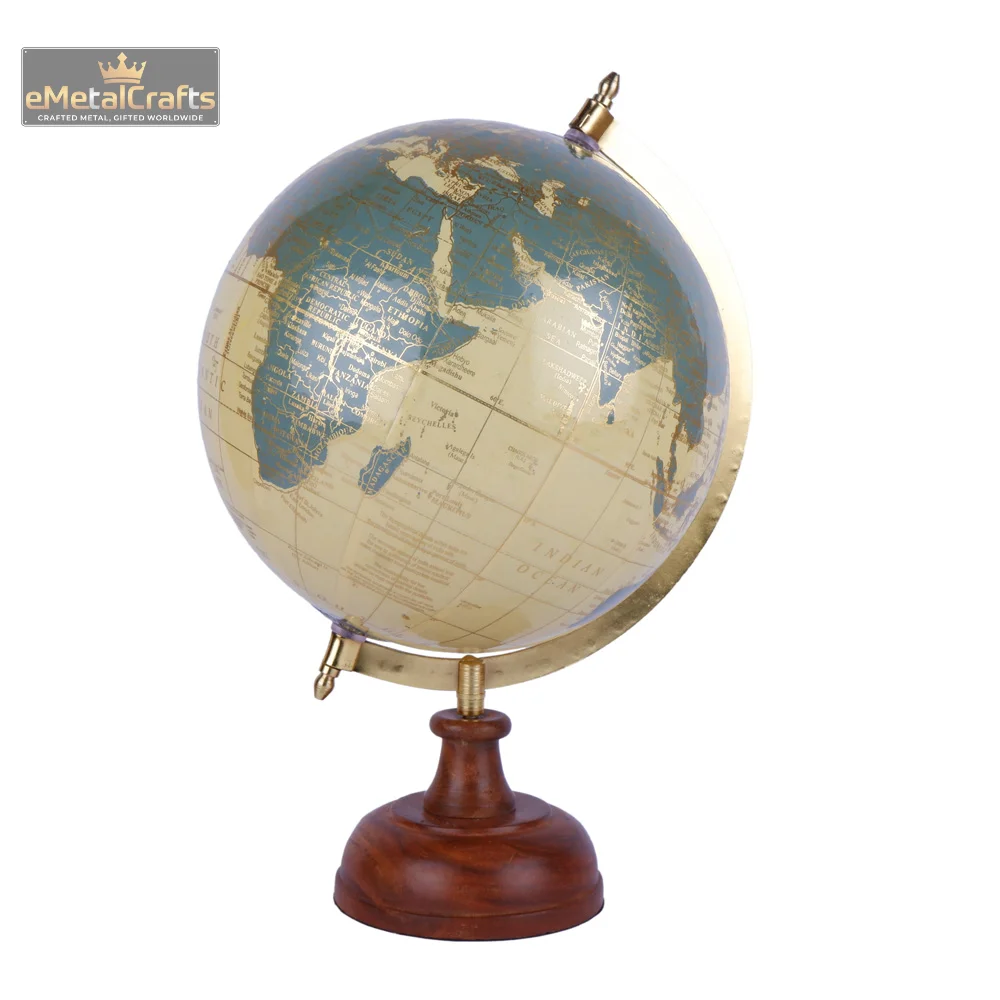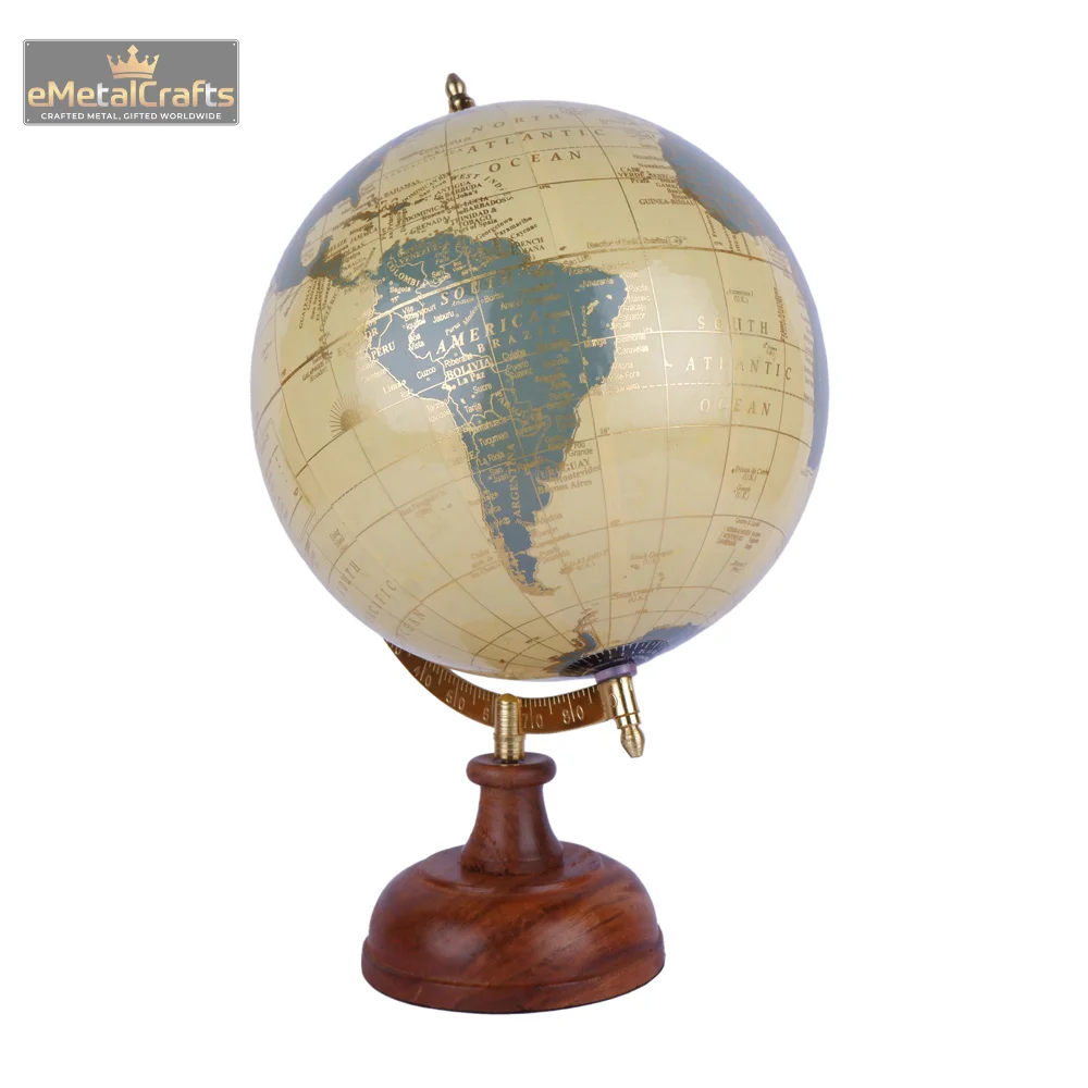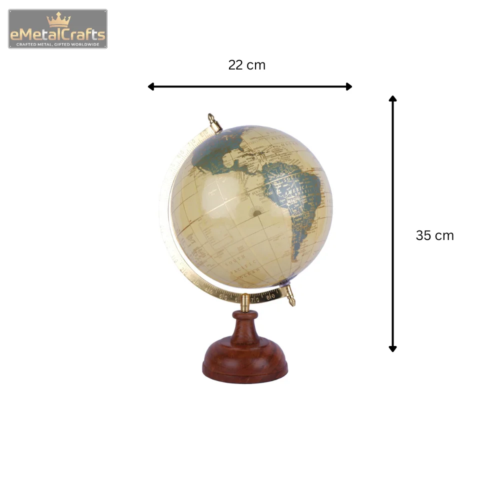 Material: Aluminium Globe material (likely plastic or composite) with painted finish, Wooden base, Metal meridian
