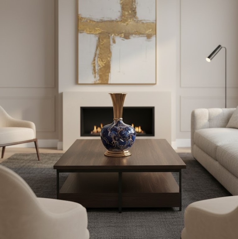 Material: Aluminium high-quality metal with a midnight blue marbled finish and golden accents