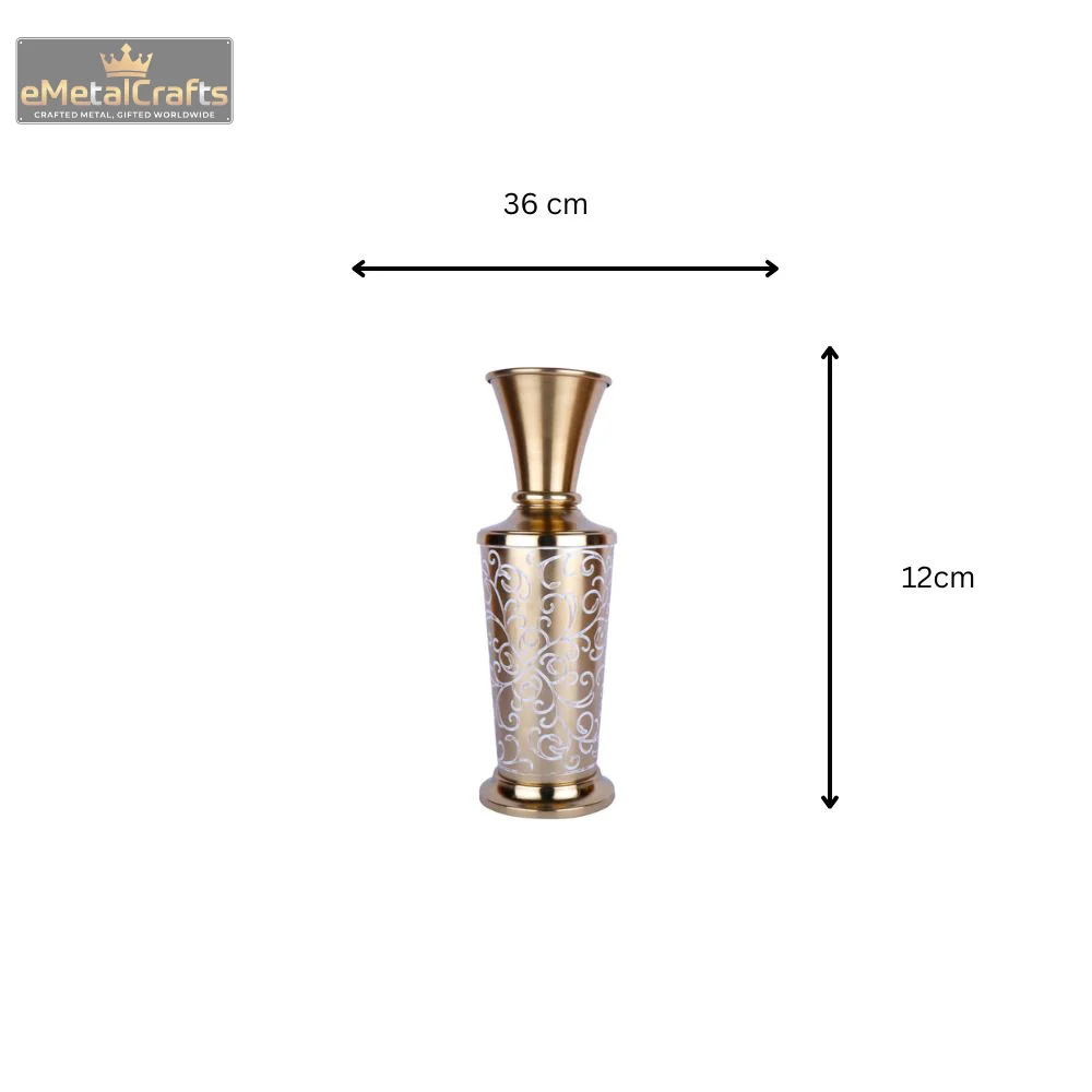 Elevate your interior décor with this striking aluminium golden and white colour flower vase, crafted to blend modern elegance with timeless charm. Featuring a radiant gold finish and sleek vertical lining details, this vase adds a bold statement to any space—perfect for displaying fresh or artificial flowers. Made from premium-quality aluminum, it offers both style and durability.