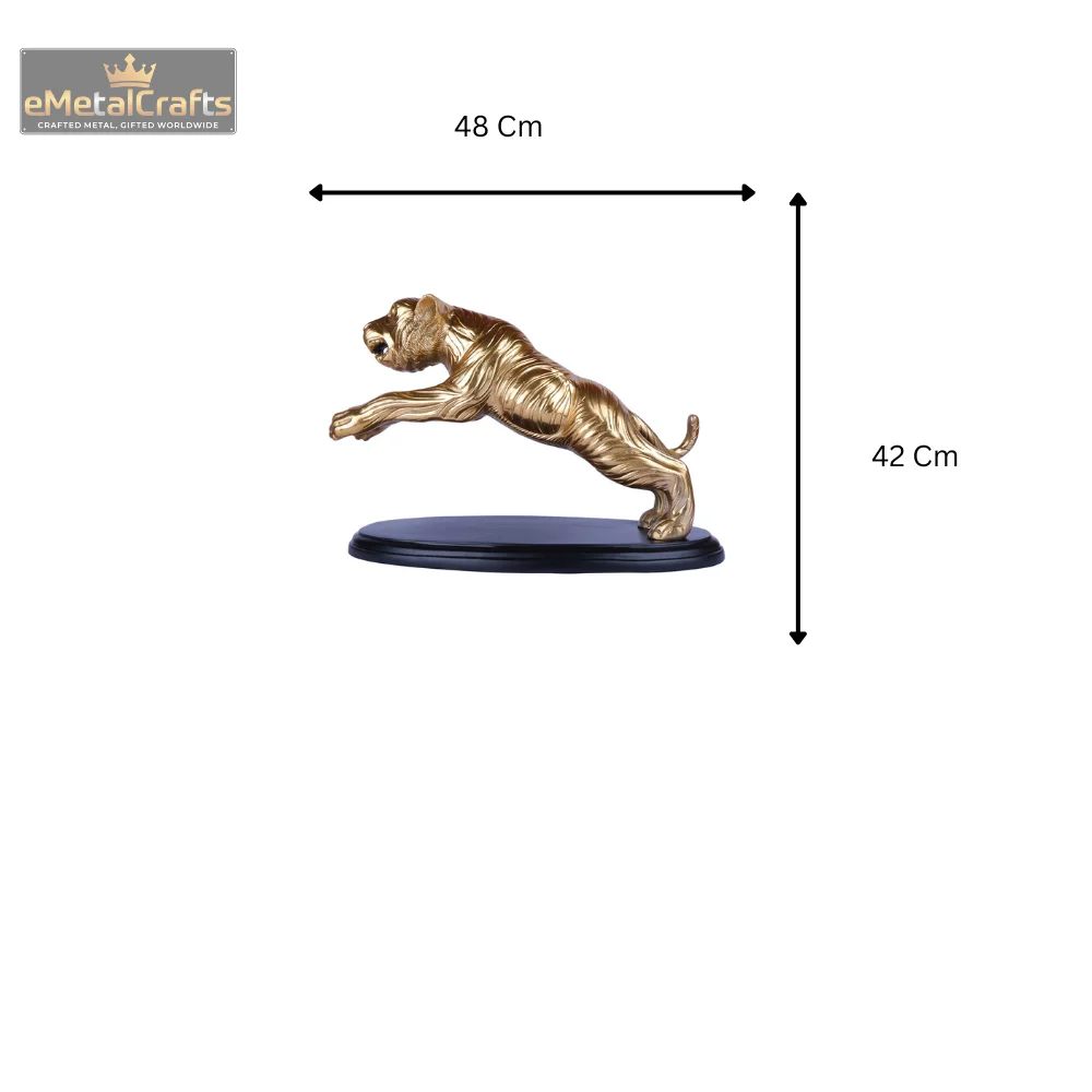 A majestic gold leaping Aluminium Panther Statue on a sleek black base, symbolizing strength, courage, and determination—perfect for desks, décor, or gifting.