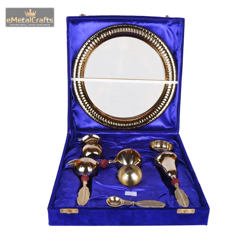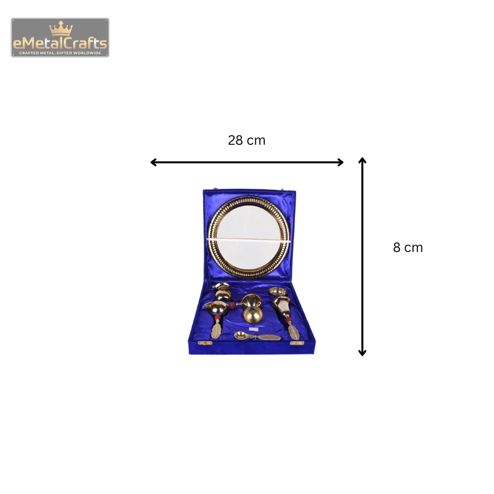 Material: Polished Metal (Likely Brass/Alloy) with Velvet-lined Wooden Box