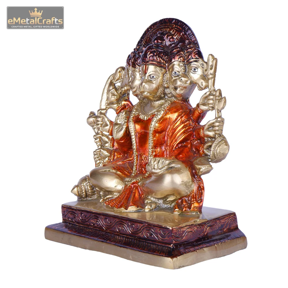 This pure brass bhavya panchmukhi hanuman idol, with five divine faces and sacred symbols, radiates strength and devotion—ideal for inviting protection and blessings into any space.