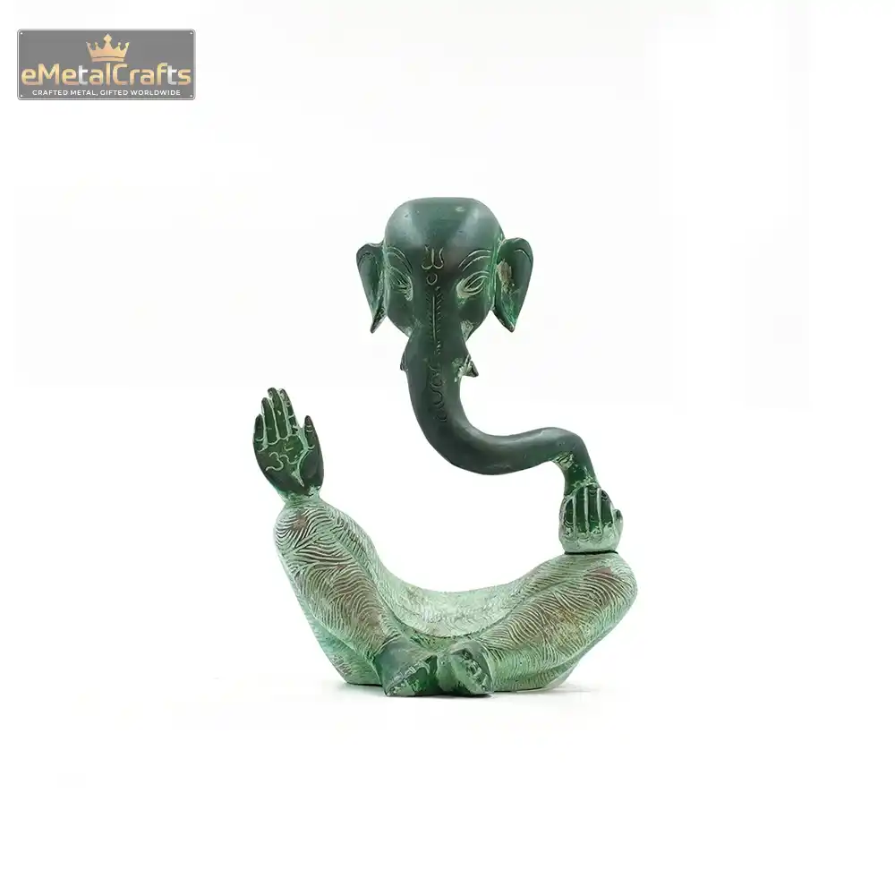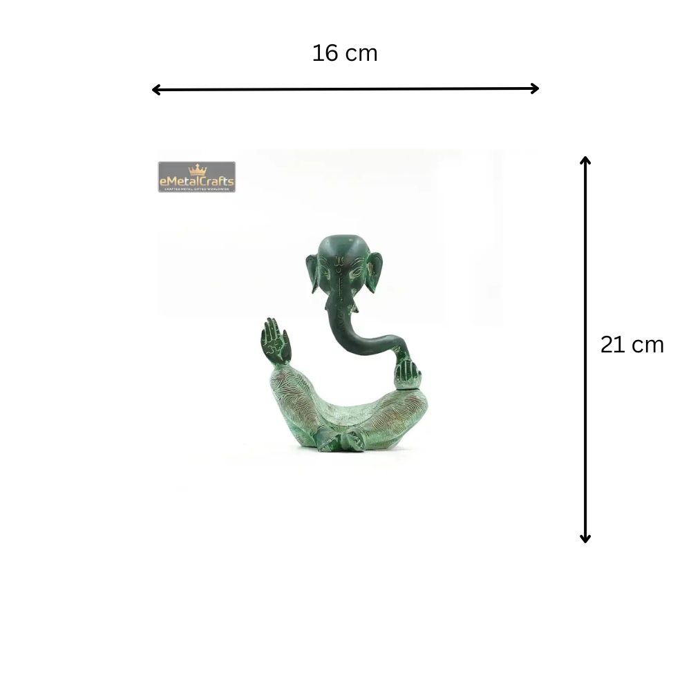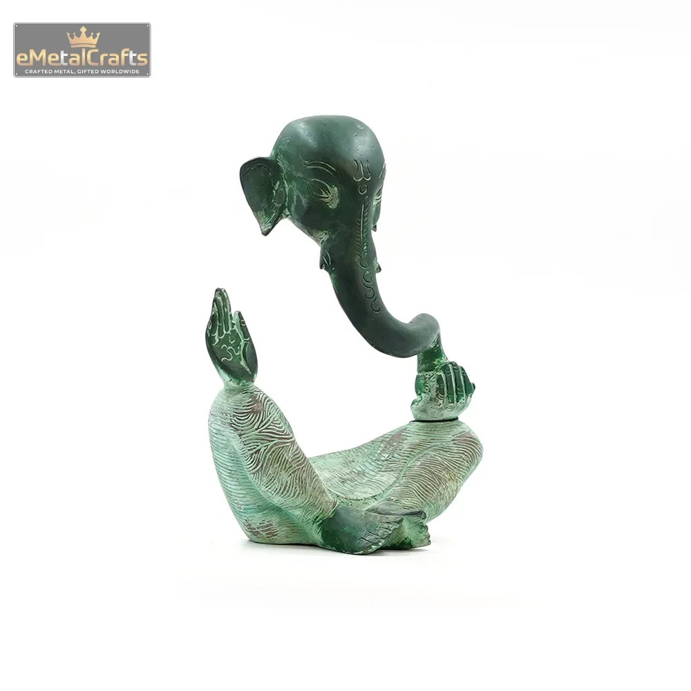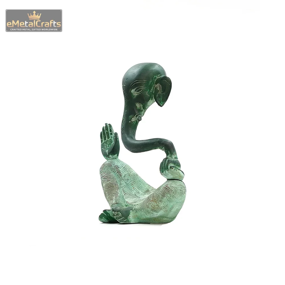 Brass Air Ganesha Statue | Sea-Foam Green Patina Finish