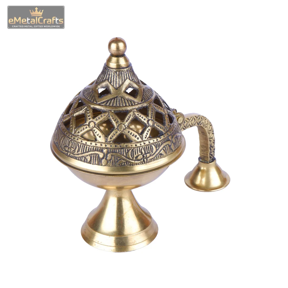Brass Ethnic Carved Design Incense Burner with Handle
