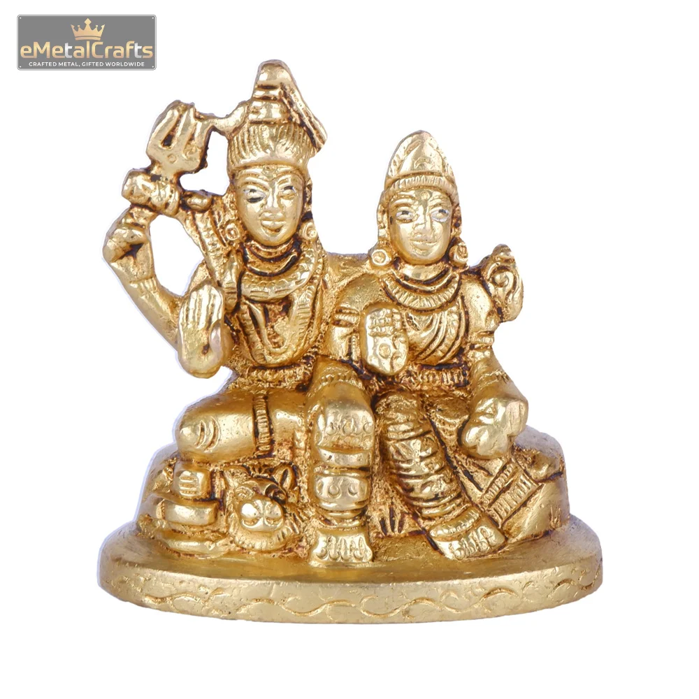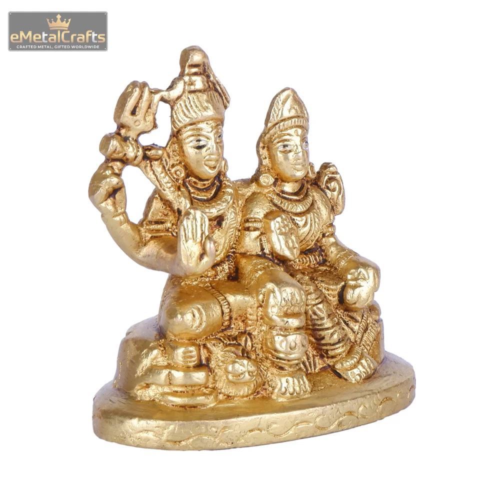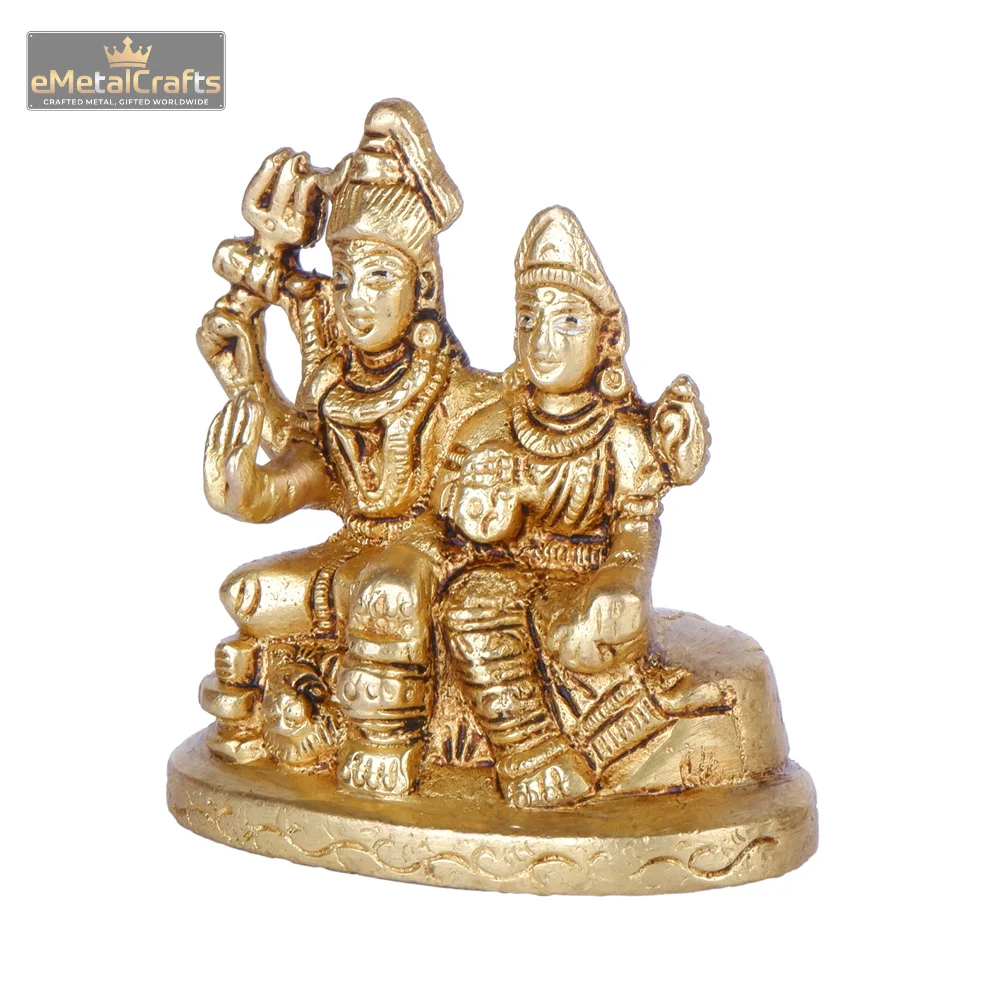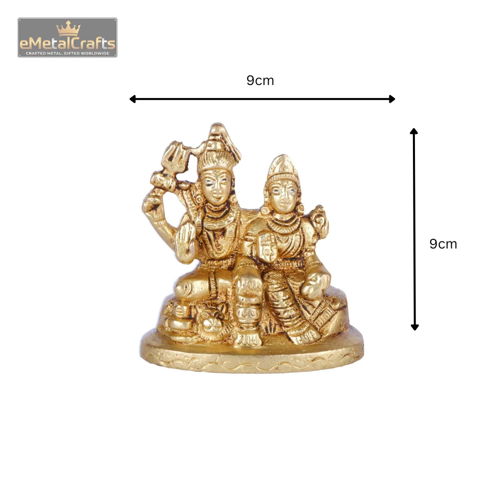 A petite brass sculpture of Lord Shiva and Goddess Parvati in a serene embrace, symbolizing balance and marital bliss, ideal for a small altar or spiritual display.