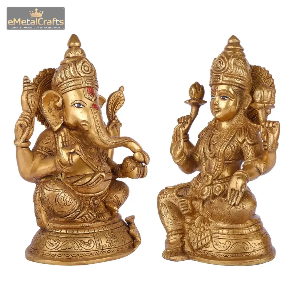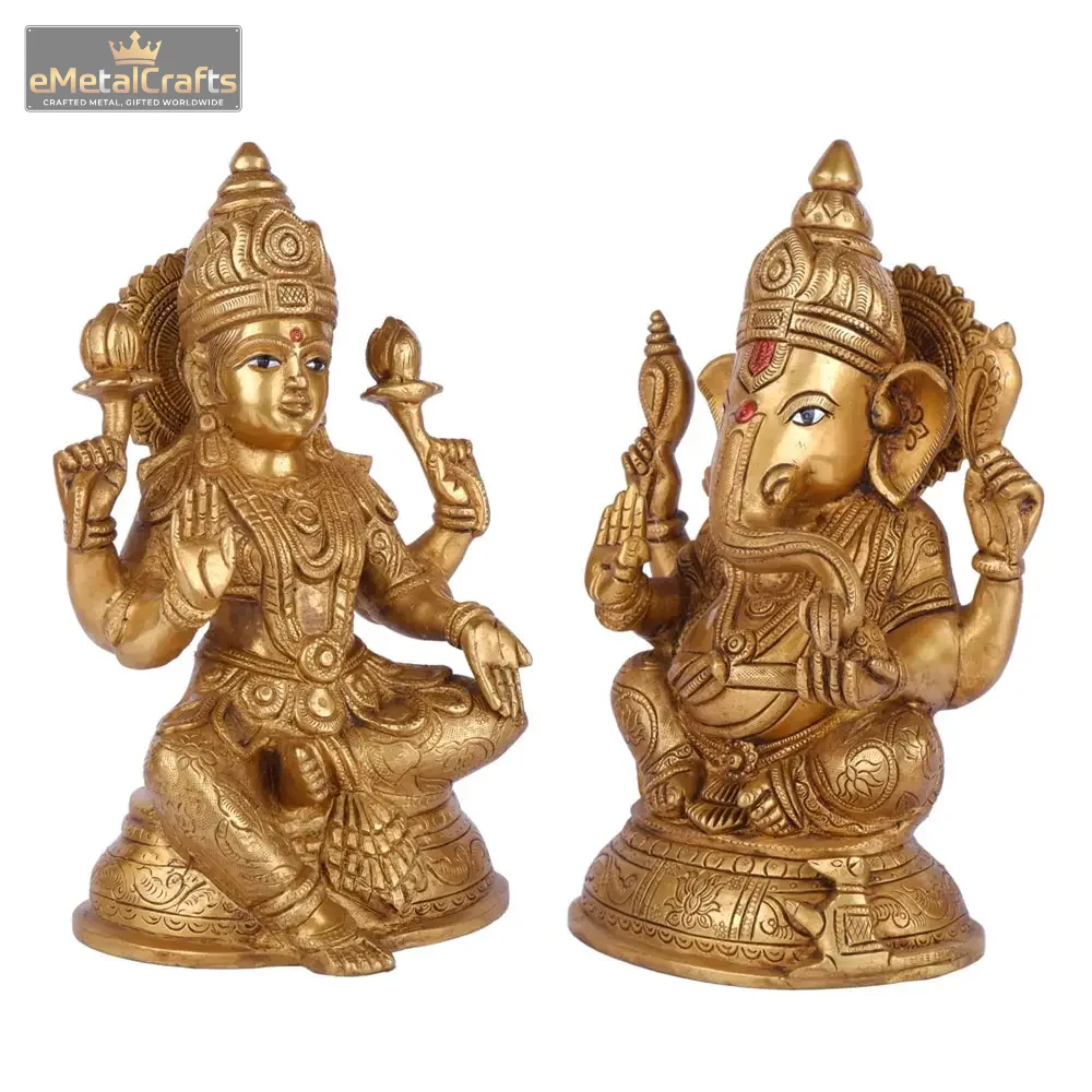 Premium laxmi ganesh murti in brass set symbolizing wealth, wisdom, prosperity, and harmony for home, office, or gifting.