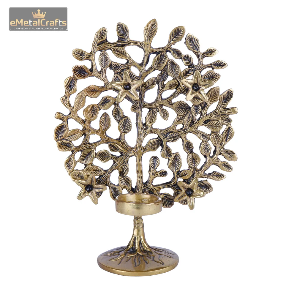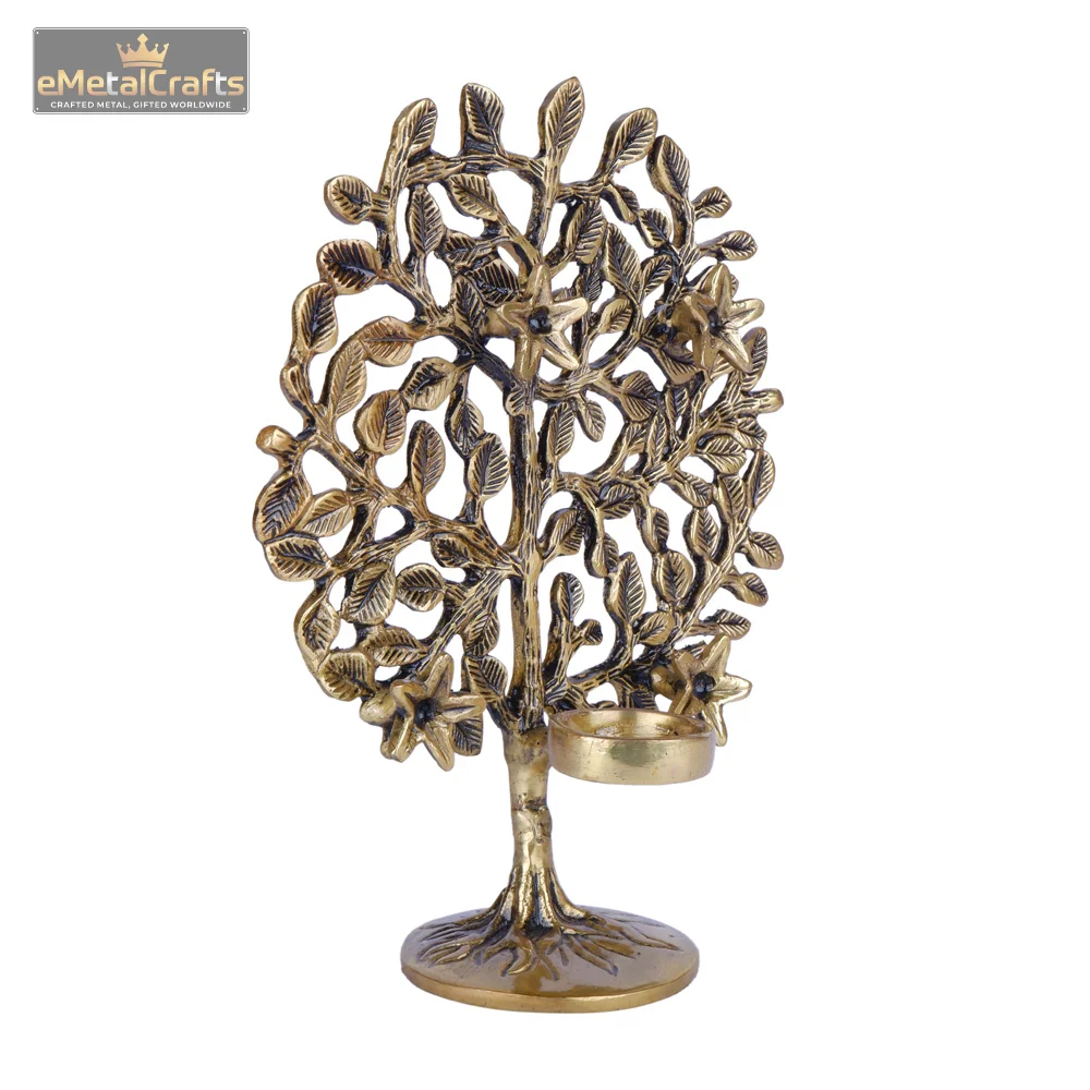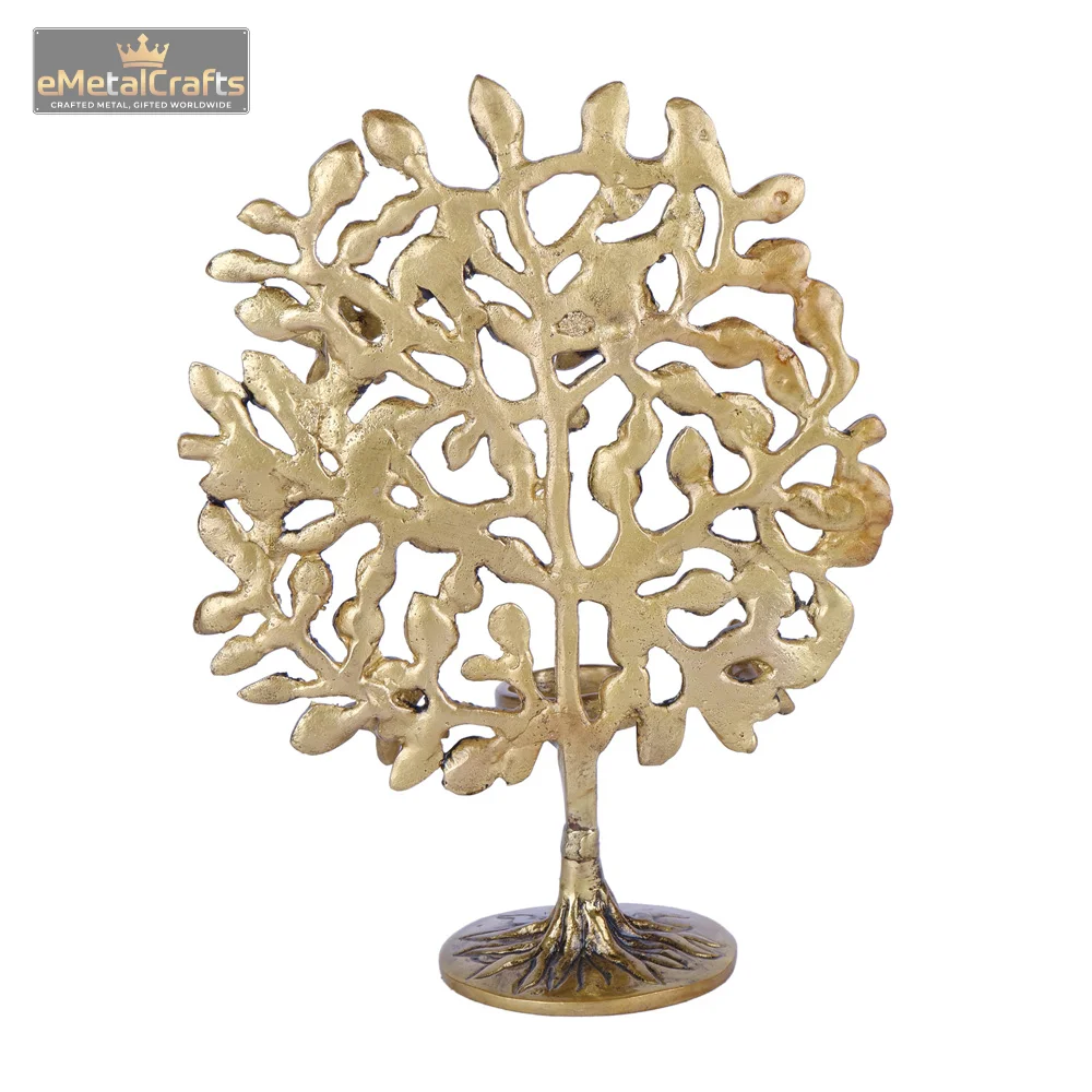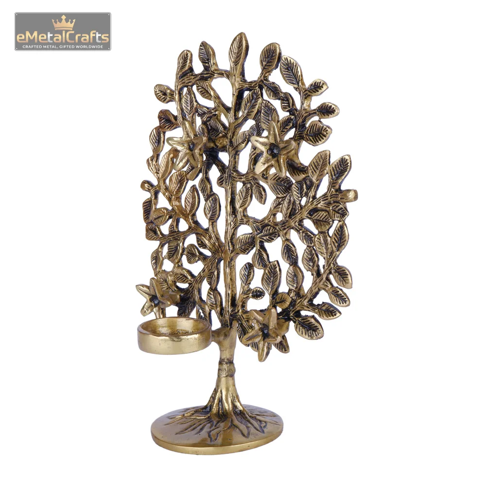 This beautifully crafted pure brass tree diya features a symbolic “Tree of Life” design, with a spreading canopy of intricately detailed leaves and delicate floral accents integrated within the branches. At the base of the sturdy tree trunk, a traditional diya cup is positioned, ready to hold oil and a wick for lighting. The entire piece boasts a rich golden brass finish, creating a warm and inviting glow when lit. This pure brass tree diya, Tree of life diya is not only a functional oil lamp but also a powerful symbol of growth, connection, and prosperity, making it a perfect addition to your spiritual space, meditation area, or as an elegant decorative item for your home. Its detailed craftsmanship makes it a unique and meaningful gift for special occasions.